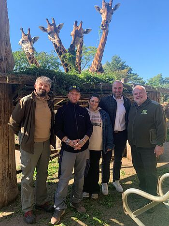 (v.l.n.r.): René Forberg (stellv. Bereichsleiter Zoo Leipzig), Ringo Geißler (Vorarbeiter bei Wackler), Susanne Modes (Service Managerin bei Wackler), Jens Riemann (Geschäftsführer Wackler Service Group) und Prof. Dr. Jörg Junhold (Direktor Zoo Leipzig)
