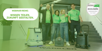 Mit unserem neuen Webinar-Format „Wissen teilen. Zukunft gestalten." starten wir eine kostenfreie Seminarreihe rund um die Zukunft der Gebäudedienstleistungen. Den Auftakt macht ein hochaktuelles Thema, das Fachkräftemangel, Effizienz und Nachhaltigkeit intelligent verbindet: Der Einsatz von Cobotik in der Gebäudereinigung.